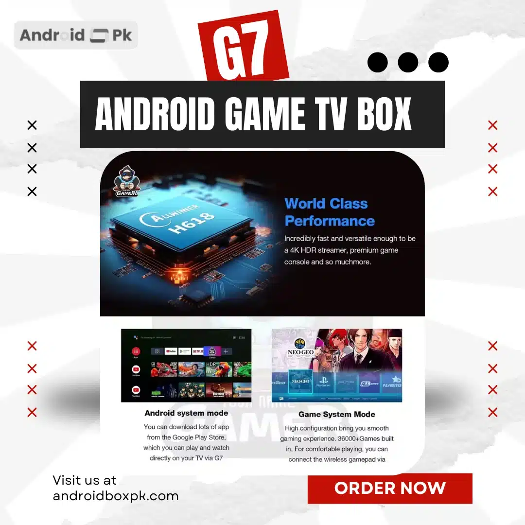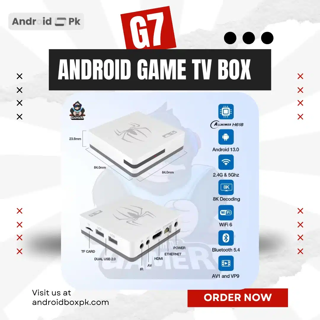 Upgrade your home gaming setup with the G7 android game box, a powerful 2-in-1 Android TV and Retro Gaming Console designed for gamers who love both modern entertainment and classic arcade games. This advanced gaming device combines Android 13 system performance with a massive retro game library, allowing you to enjoy thousands of classic titles directly on your TV.