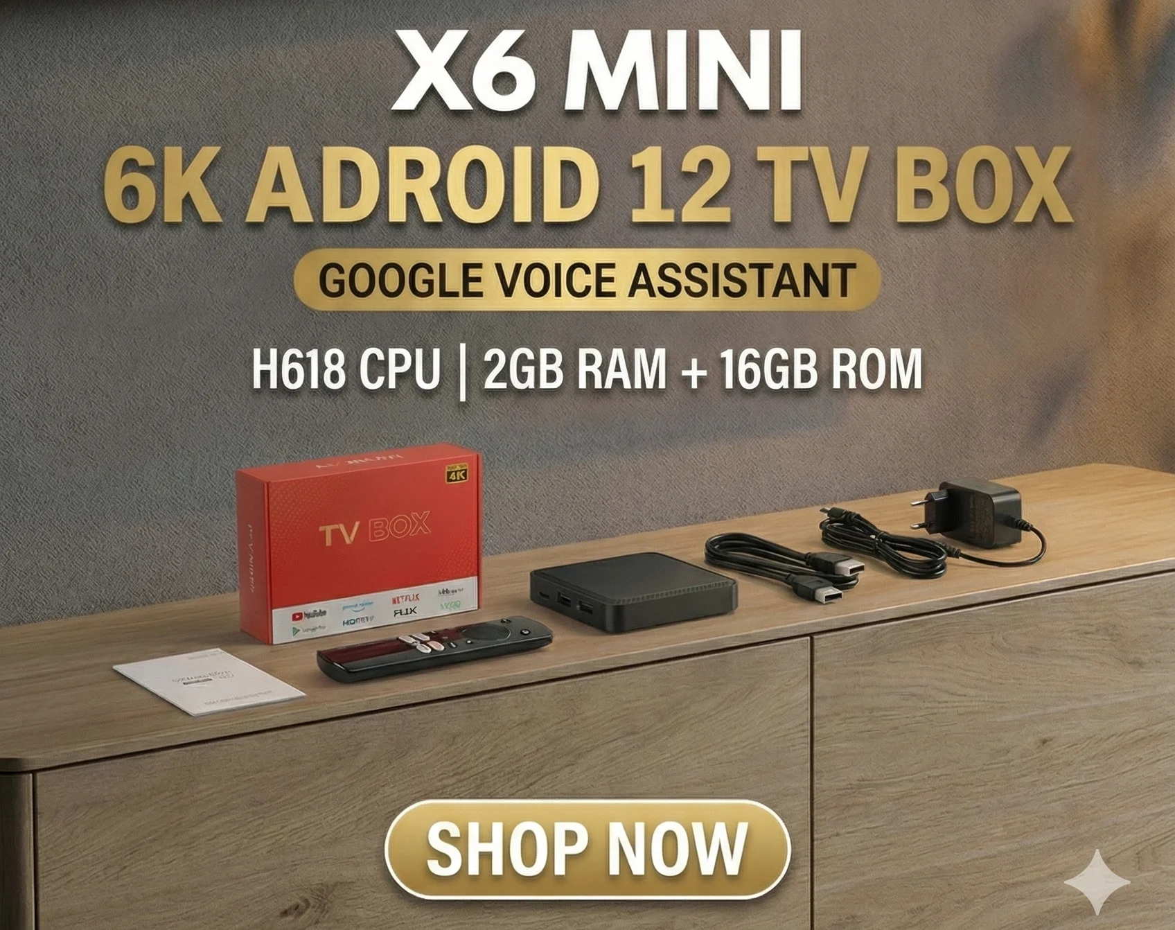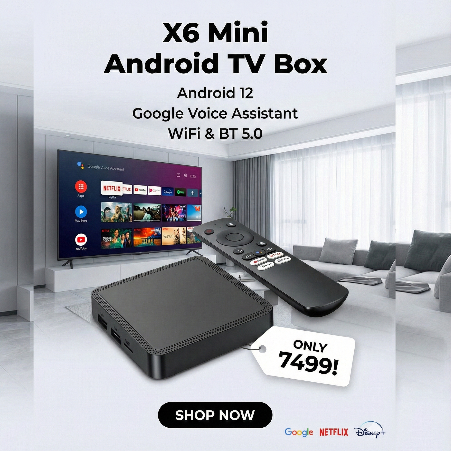 Upgrade your home entertainment experience with the X6 Mini Android TV Box, a powerful and compact device designed to transform your ordinary TV into a smart entertainment hub. Packed with advanced features, this TV box delivers smooth performance, high-definition visuals, and effortless connectivity for a truly cinematic viewing experience at home.