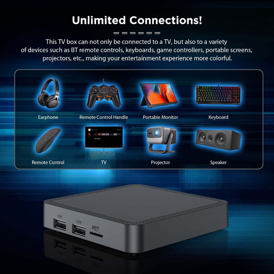 Enjoy faster, smoother, and more stable performance with Android 12. The updated system offers improved compatibility with apps, enhanced security, and a user-friendly interface, ensuring you get the best out of your TV box.